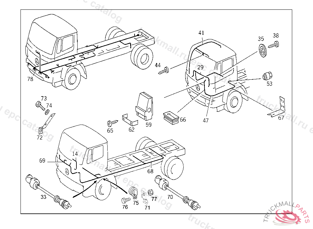 ELECTRIC CABLE FROM CAB PLUG-CONNECTION TO WASHER PUMP & TO CAB UNLOCKING MECHANISM