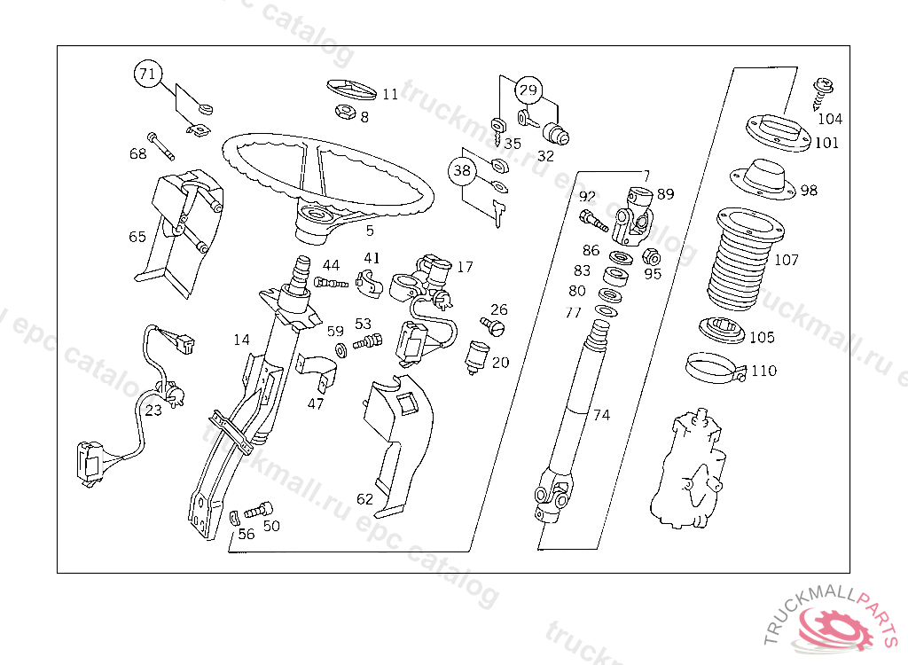 BEARING STEERING SHAFT, HOLE SPACING: 90/110 MM, TO BE ADAPTED DURING ASSEMBLY