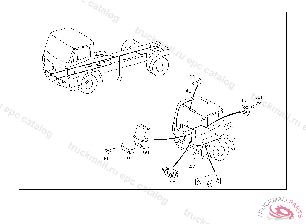 ELECTRIC CABLE FROM CAB PLUG-CONNECTION TO WASHER PUMP & TO CAB UNLOCKING MECHANISM