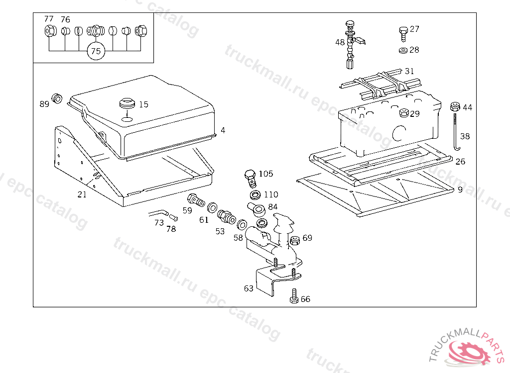 RAIL BATTERY BASE FRAME, 10/20 FROM CHASSIS 4 347 647,50/60 FROM CHASSIS 4 345 732