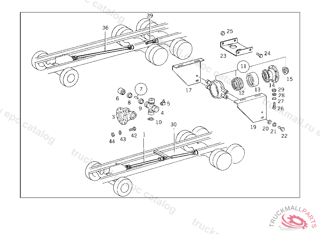 PROPELLER SHAFT ,5 091743 FLANGE MOUNTING:NUT,INTERMEDIATE BEARING HOUSING DIA./WIDTH:174/57 MM, Replaced By: A3874109704, +001A3894100222, +001A3894110146, +001A3894110162, +001A3954130011, +001A3894130161, +001A3839900019