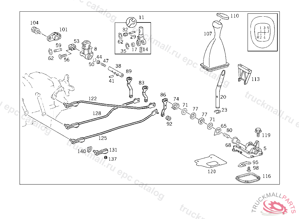SHIFTING TUBE FOUR-GATE SHIFT, 124.0,124.1 : F 063053 124.2,124.3 : F 079077