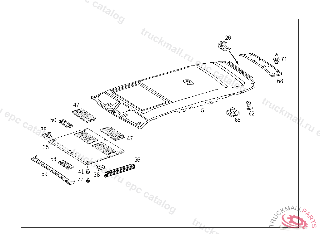 HEADLINER , FIRST EXHAUST STOCK OF OLD PARTS UP TO IDENT NO. A 195029 , J 028149, Replaced By: A2106903250