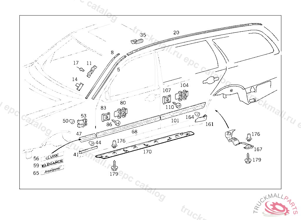 LEDGE RIGHT REAR DOOR, CENTRAL CLASSIC