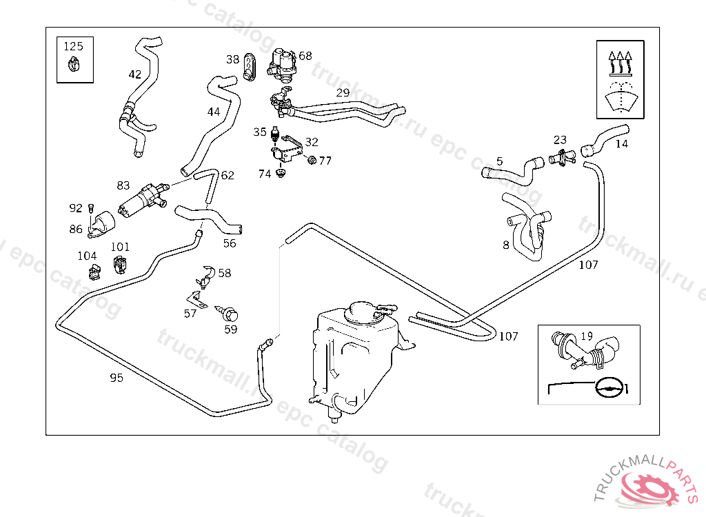 HOSE RETURN, PANE WASHER WATER HEATING, ONLY USED WITH HEATED PANE WASHER CODE 875