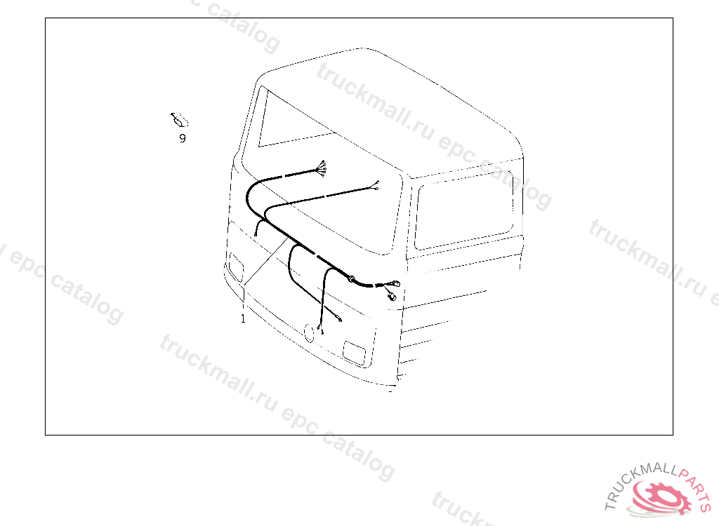 ELECTRIC CABLE FROM PLUG CONNECTION TO REAR CABLE CONNECTOR, ON TRUCKS FROM CHASSIS 145737,EXCEPT FOR SEE FOOTNOTE 4,ALSO INSTELLED ON SEE FOOTNOTE 5 ON BUSES FROM CHASSIS 018154,EXCEPT FOR SEE FOOTNOTE 8,ALSO INSTELLED ON 017661,017829.