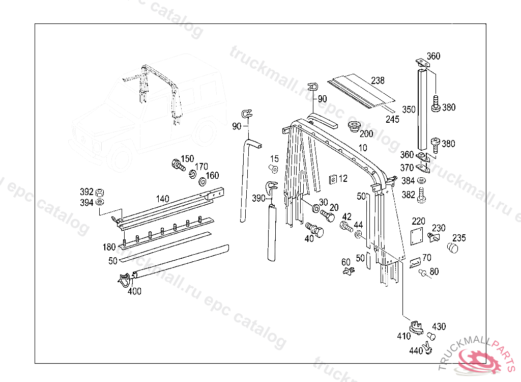 TARPAULIN BOW FOLDING TOP TO ROLL-OVER BAR