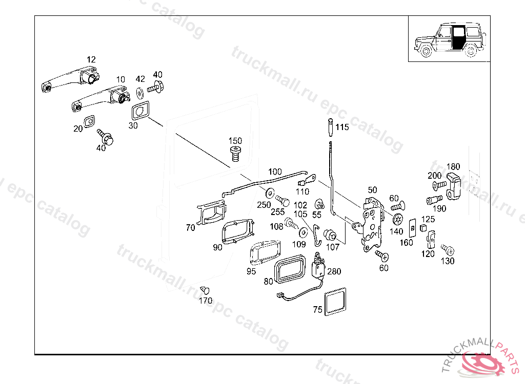 DOOR HANDLE OUTSIDE RIGHT REAR, STATE LOCK NUMBER WHEN ORDERING