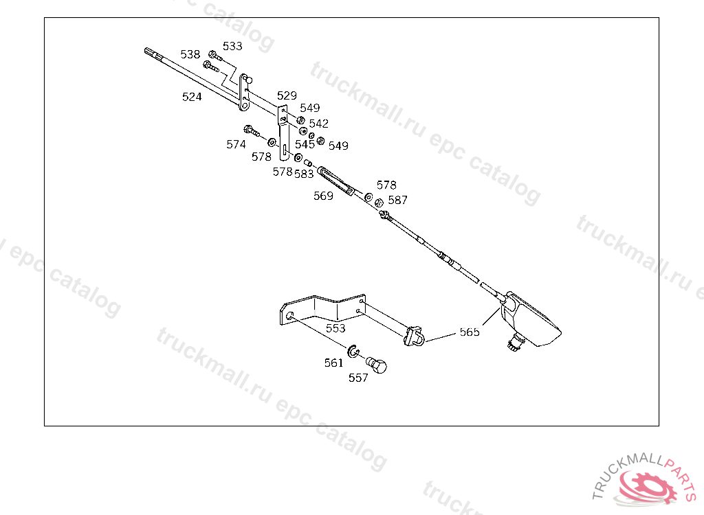 SHEET METAL SCREW HAND BRAKE ROD WITH COVERING TO CAB FLOOR