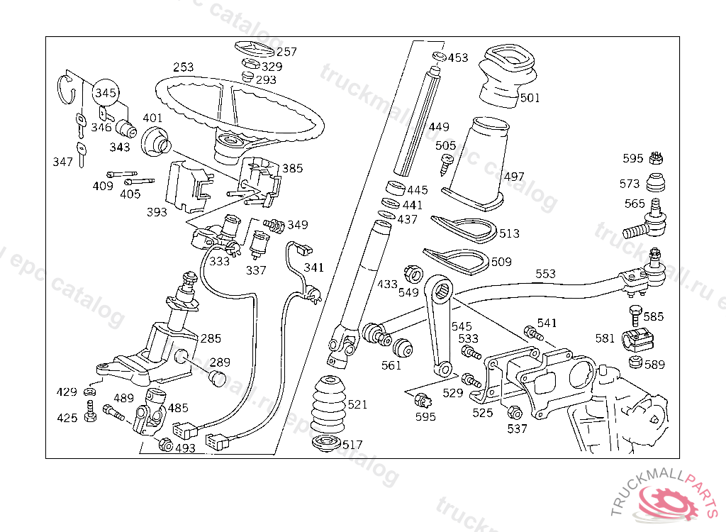 STEERING SHAFTLEMFOERDER, USED WITH SHORT MERCEDES-BENZ CAB