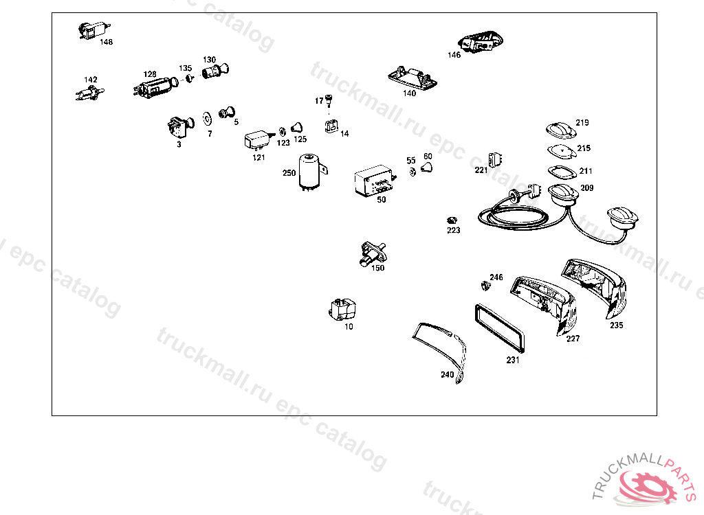 LICENSE PLATE LAMP RIGHT, UP TO CHASSIS: 110.010 130557 110.110 225647 111.010 069692