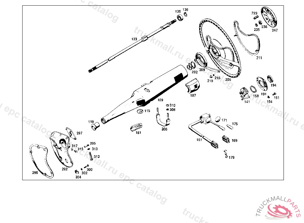 STEER. COLUMN JACKET TUBE , 000,001,010 FROM CHASSIS 130558-190317 EXCEPT FOR,SEE FOOTNOTE 10, 100,101,110 FROM CHASSIS 225648-358853 EXCEPT FOR,SEE FOOTN OTE 11 ON SPECIAL REQUEST,DB POWER STEERING