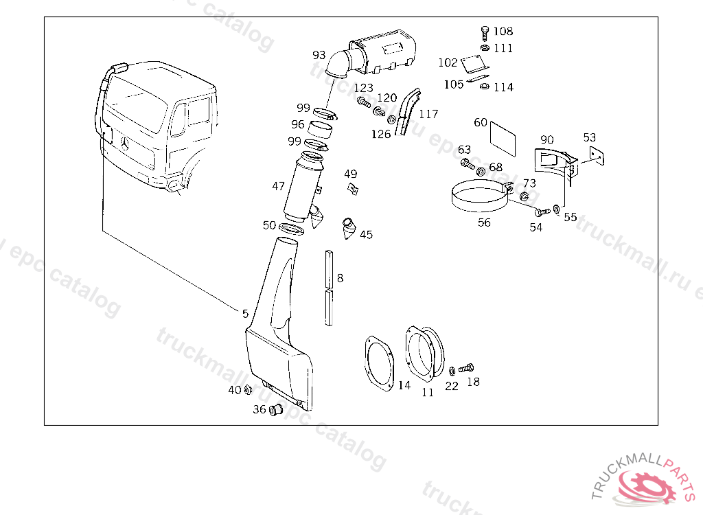 7. 001 AIR INTAKE FROM ABOVE CAB,WITH CYCLONE PRE-CLEANER,UP TO CHASSIS 4 897760 IL.2