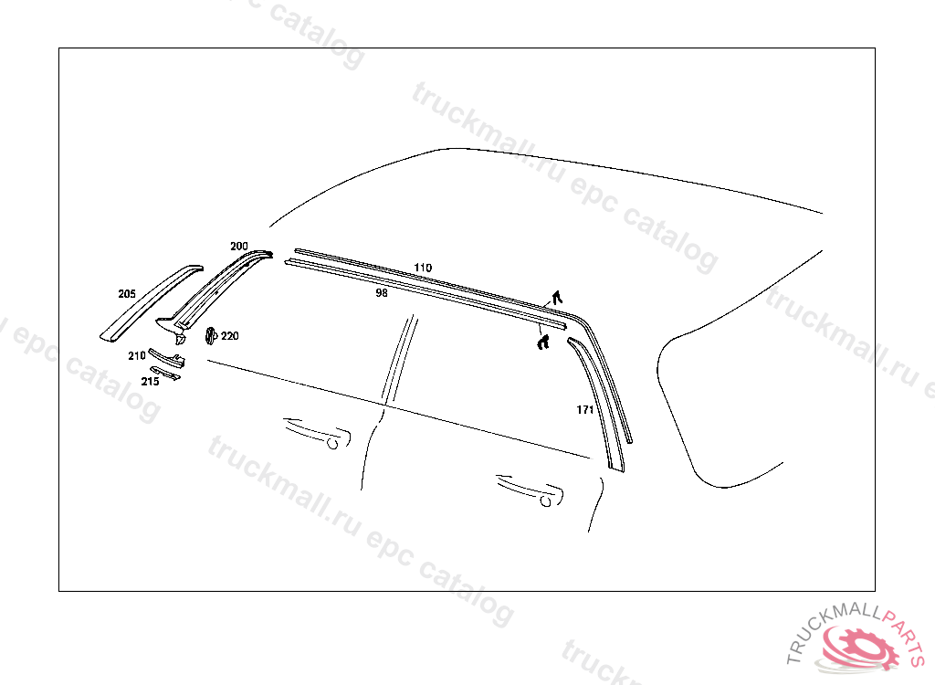 DRIP MOULDING RIGHT, FROM CHASSIS: 015 200001 110 400001 115 200001 005,017,105,107,108,117,119 000001