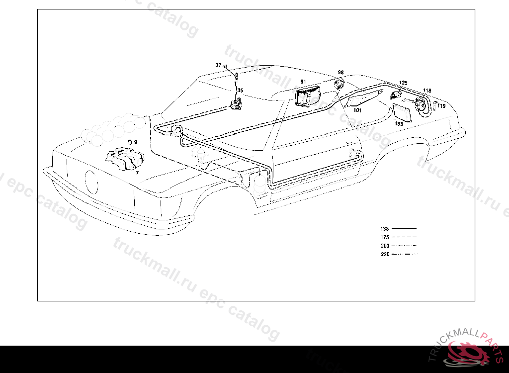 COVER LUGGAGE COMPARTMENT,REAR, 107.022 FROM CHASSIS 004114 EXCEPT FOR SEE FOOTN.87,107.023 FROM CHASSIS 011971 EXCEPT FOR SEE FOOTN.88 AND FOOTN.85 DARK ANTHRACITE NO.7088,CODE 001,101,201,901,BLUE NO.5061,CODE 002,102,202,902,TOBACCO NO.8288,CODE 003,103,203,903AND FOOTN.92