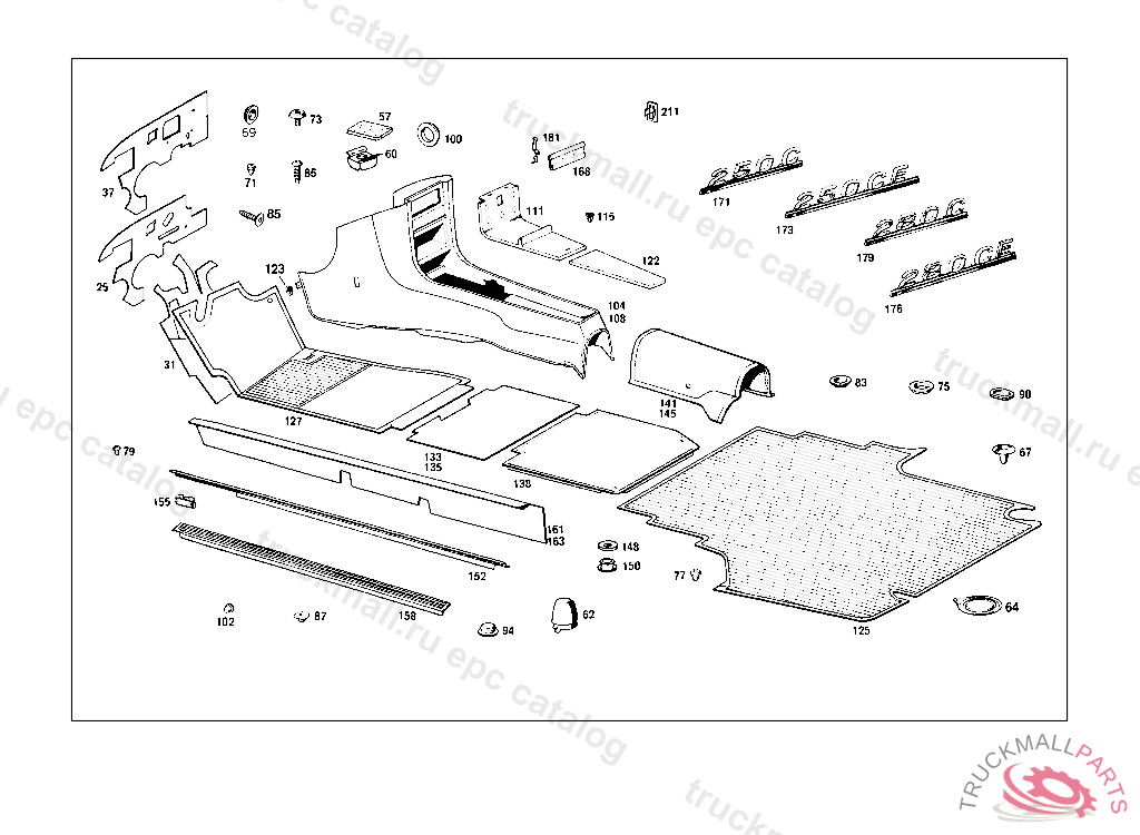 CARPET REAR FLOOR,RIGHT, STATE COLOR NUMBER WHEN ORDERING UP TO CHASSIS: 114.010 033394 114.015 036937 115.010 037134 115.015 035746 115.110 084833 115.115 038561