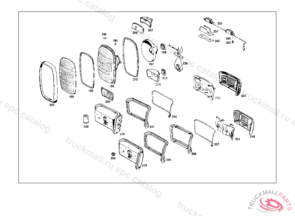 LENS RIGHT, UP TO CHASSIS: 015,115 200000 110 400000 FROM CHASSIS: 010 079808 015 092257 110 203813 112 204779 115 099682