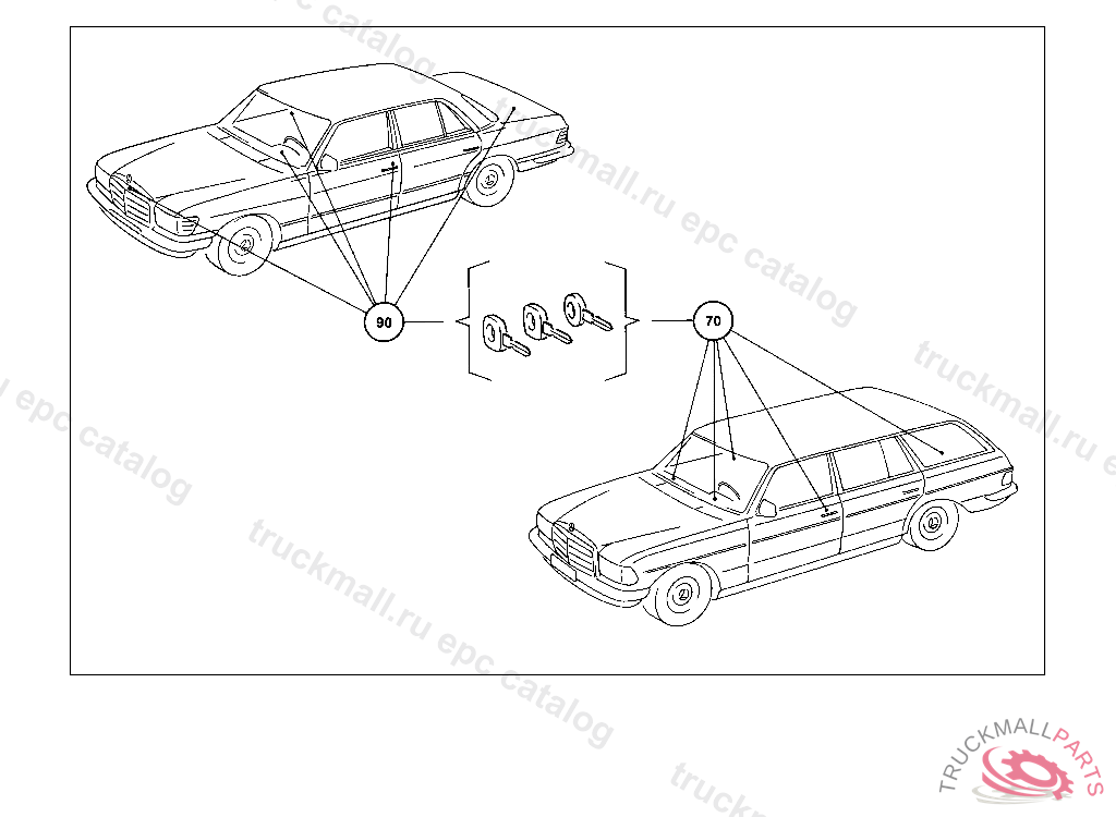 OUTFIT (LOCK,KEY,HANDLE) DOOR POCKET & GLOVE COMPTMT. LOCKABLE, USED WITH CENTRAL LOCKING MECHANISM, 003 108194 007 095971 086 007385 093 010189 102,103 282248 105 257003 183 018166 190 023811 193 005892 200 064147 280 002523 283 007422