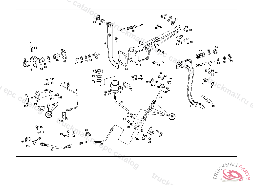 LINE FROM CLUTCH HOSE TO CLUTCH SLAVE CYLINDER, FROM CHASSIS: 000,002,010 089164 015 105337 100,102,103,110,112 262248 115 112353 005,017,105,107,108,117,119 000001 UP TO CHASSIS: 005,017 003779 105,107,108,117,119 004645