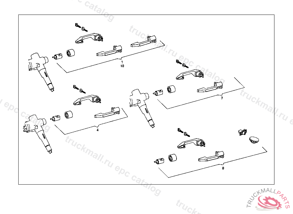 OUTFIT (LOCK,KEY,HANDLE) , FROM CHASSIS: 000,002,010 099764 015 124562 100,102,103,110,112 260385 115 130801 UP TO CHASSIS 005,017 016519