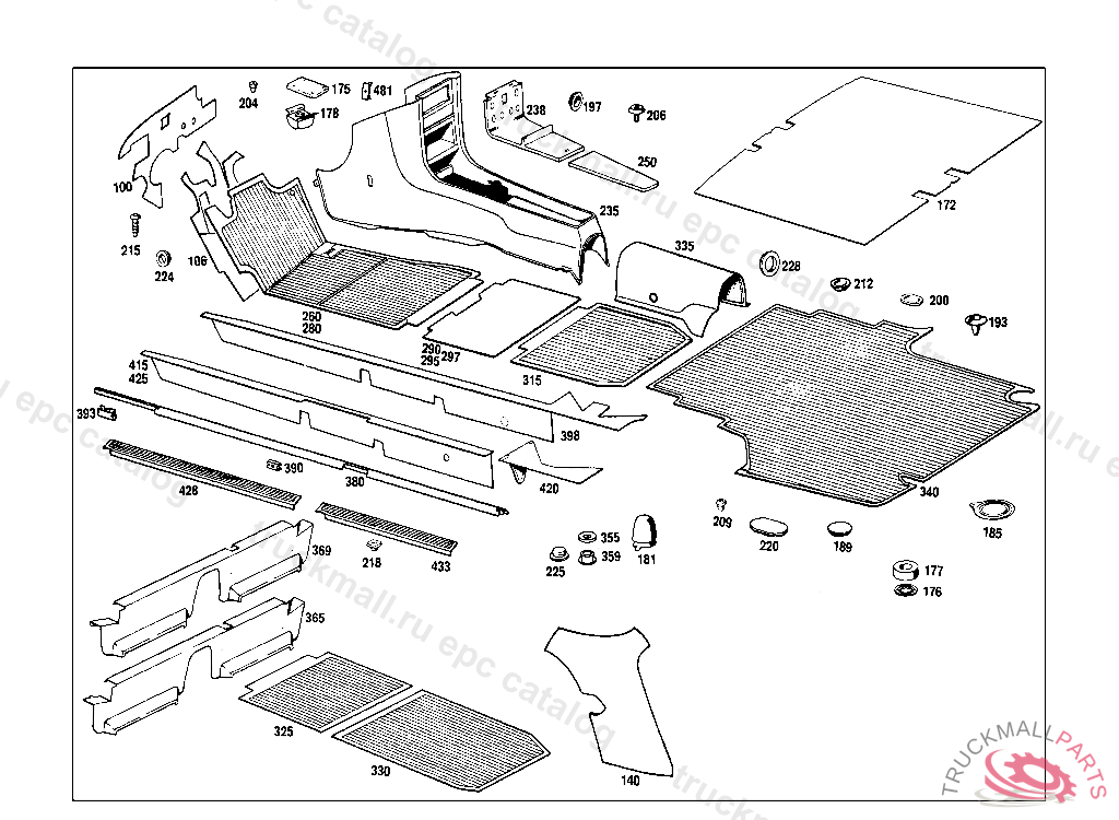 LINING LEFT,BELOW FRONT SEATS, STATE COLOR NUMBER WHEN ORDERING UP TO CHASSIS: 114.005 139449 007,015 138578 010 UNTIL PRODUCTION STOP 011 019211 060 010778 062 009013