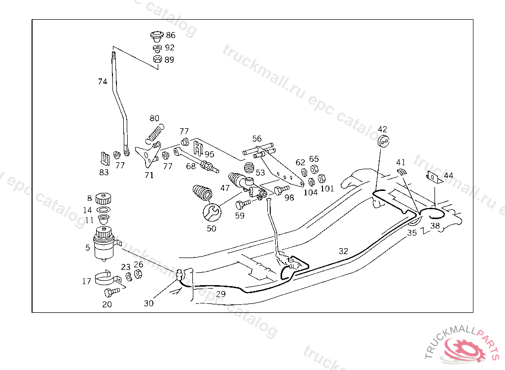 LINE FROM MASTER CYLINDER TO FRONT LEFT BRAKE HOSE, 000 193701 003 097469 086 006508 093 007717 102,103 209243 183 013349 190 020074 193 000014 200 006559 283 001514 INAPPLICABLE TO ANTI-LOCK BRAKING SYSTEM (ABS)