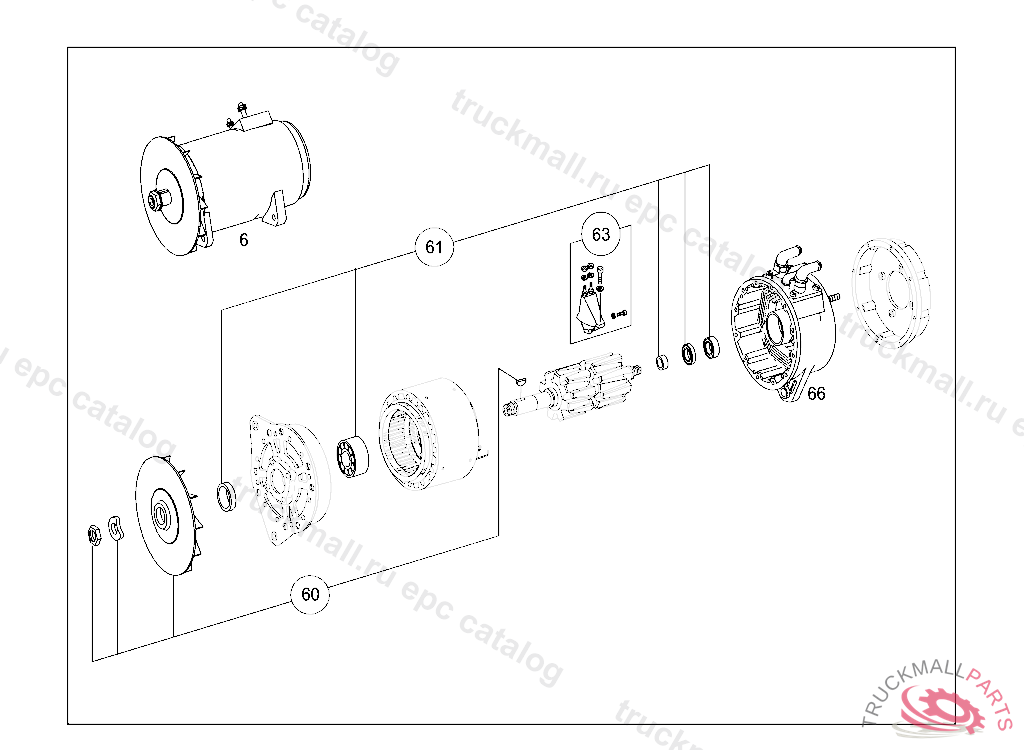 ALTERNATOR WITH REGULATOR INCORPORATED,LESS PULLEY