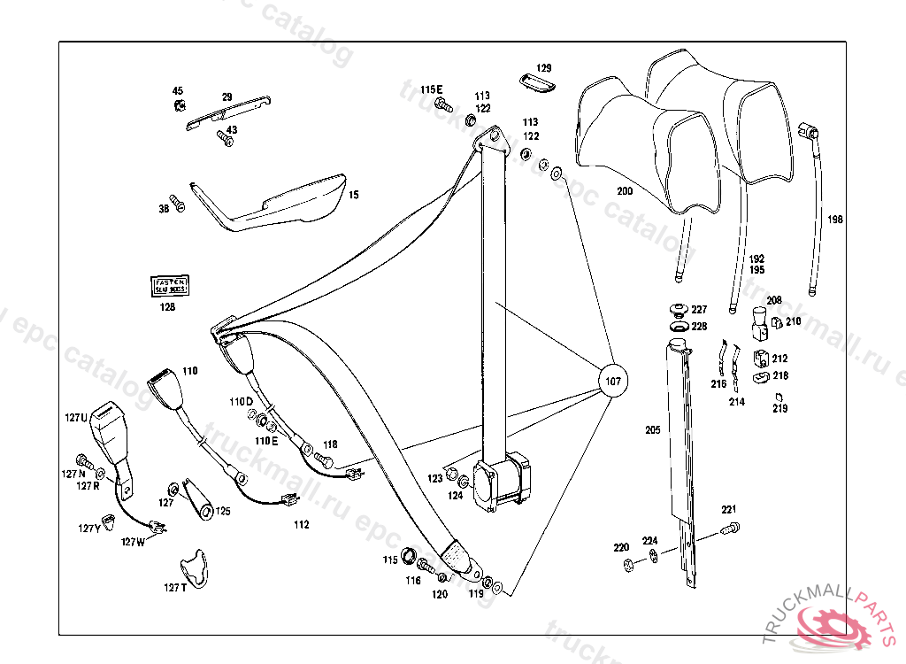 MOUNTING MATERIAL ARMREST TO RIGHT FRONT SEAT, 116.020 UP TO CHASSIS 049943 ALSO INSTALLED ON 050113,EXCEPT FOR SEE FOOTN. 23 116.024,025 UP TO CHASSIS 050150 ALSO INSTALLED ON 050203, EXCEPT FOR SEE FOOTN. 25 116.028,029 UP TO CHASSIS 028987 ALSO INSTALLED ON 029201, EXCEPT FOR SEE FOOTN. 27 116.032,033 UP TO CHASSIS 041786 ALSO INSTALLED ON 041848, EXCEPT FOR SEE FOOTN. 29