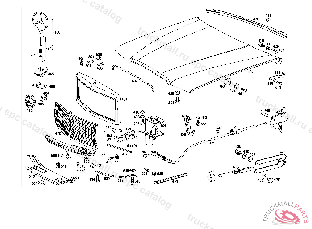 RADIATOR GRILLE SHELL LESS MERCEDES STAR, FROM CHASSIS: 020 011953 024 013314 025,029 000001 028 013181 032,033 010271