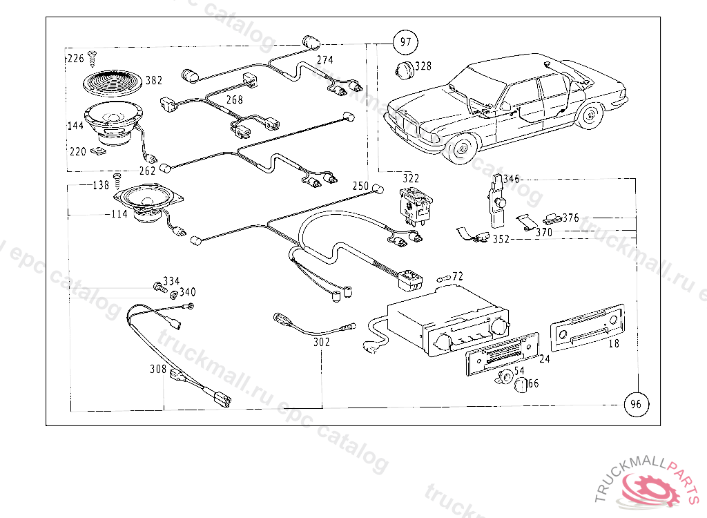 RADIO ACCESSORIES REAR LOUDSPEAKER, THE FOLLOWING PARTS ARE NOT INCLUDED IN RANGE OF DELIVERY: ON 123.02,123.03,123.1,123.22,201. VCOVERING IN HOUSING DELIVER ADDITIONALLY:123 820 75 17