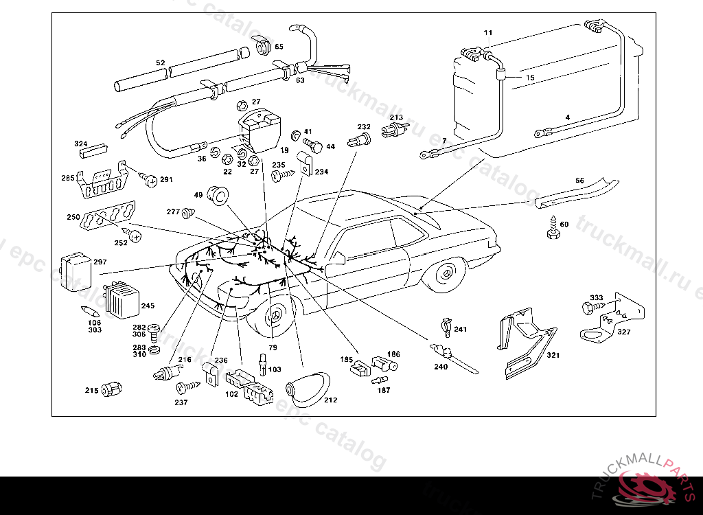 CABLE HARNESS MAIN CABLE HARNESS, FROM IDENT NO. 107.024 023686 107.044 050533 UP TO IDENT NO. 107.024 025404 107.044 053272 FROM CHASSIS SEE SA 11 163