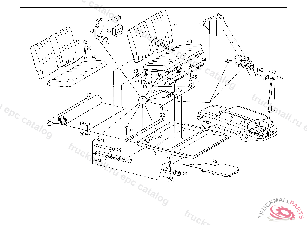 PLATE REAR FOLDING SEAT DETENT TO REAR SEAT BENCH BACKREST, 123.083 UNTIL PRODUCTION STOP 123.086 007456 123.093 010824 123.183 019533 123.190 024692 123.193 007542 123.280 003381 123.283 008673