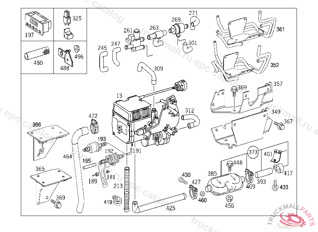 HEATING UNIT , FIRST EXHAUST STOCK OF OLD PARTS UP TO IDENT NO. K 291257, Replaced By: A9425001498