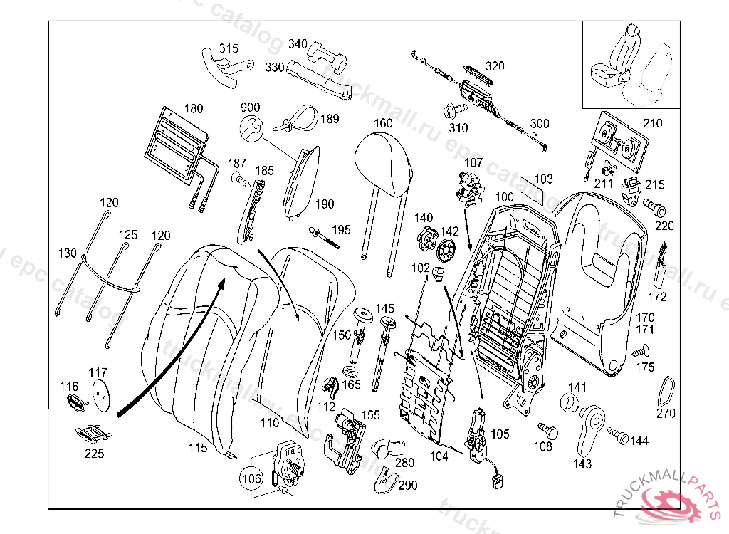 BACKREST FRAME ASSEMBLY RIGHT, WITH MEMORY FOR MULTICONTOUR SEAT, Replaced By: A0009104234, +001A1267820197