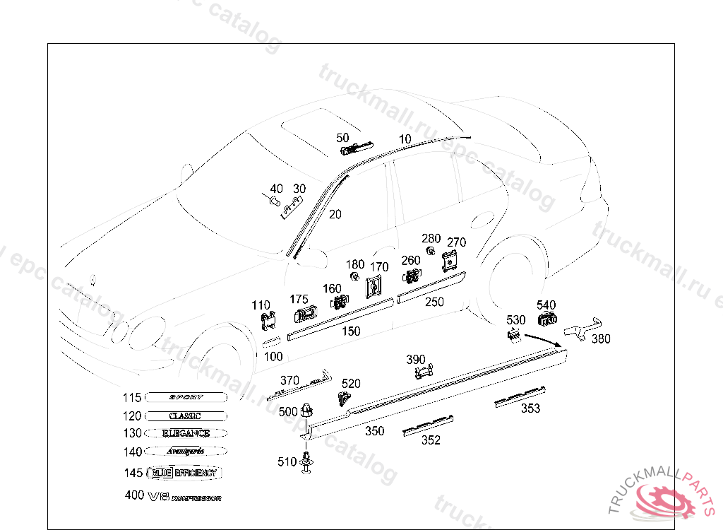 PANELING SIDE MOLDING RIGHT, TO BE PAINTED PRIOR TO INSTALLATION CAUTION! WHEN ORDERING ES2 NO TO BE QUOTED: 9999 9999QFT211L9000 COLORLESS