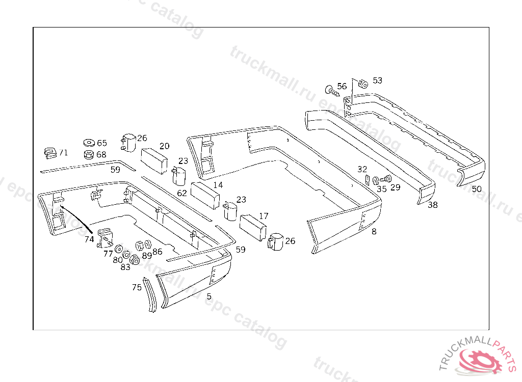 PANELLING REAR BUMPER, TO BE PAINTED PRIOR TO INSTALLATION FOR COLOR NUMBERS AND PAINT CODES USED FOR OUTSIDE PARTS,SEE FOOTNOTE 901