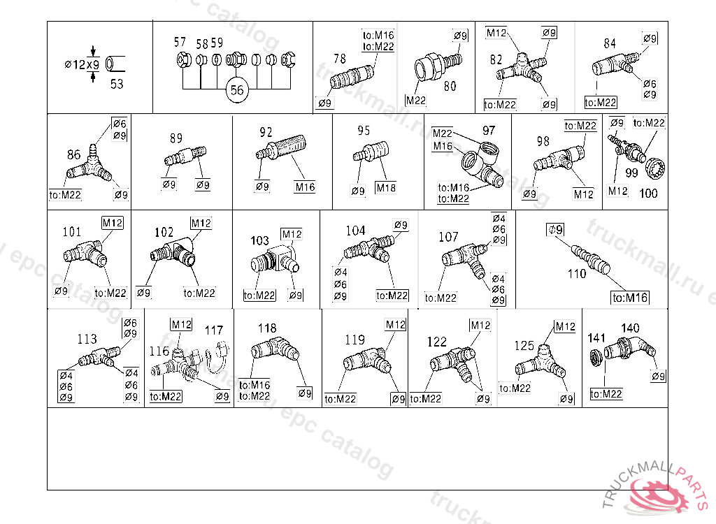 ELBOW FITTING COMPRESSED-AIR-LINE PLUG-CONNECTION TO M 22, 9 MM / 9 MM, VOSS 230, Replaced By: A0049970089, +001A0009978134