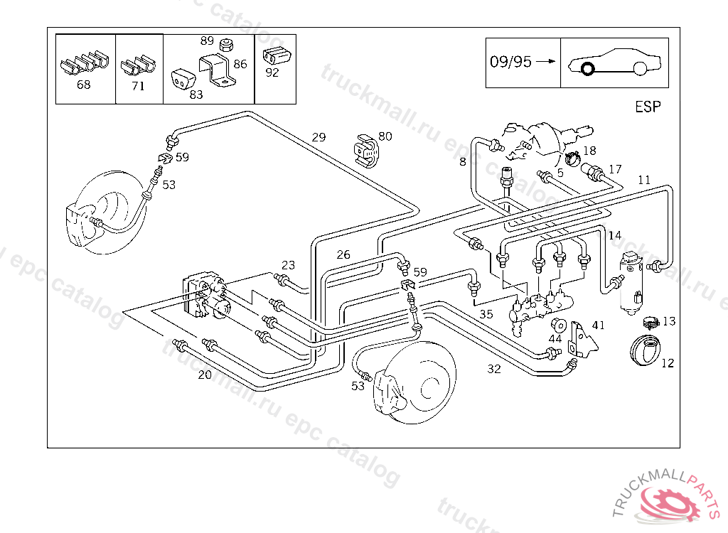 CLAMP SPACING OF BRAKE LINES, UP TO IDENT NO. A 212244 EXCEPT FOR A 187334 - A 212243 WITH CODE 867
