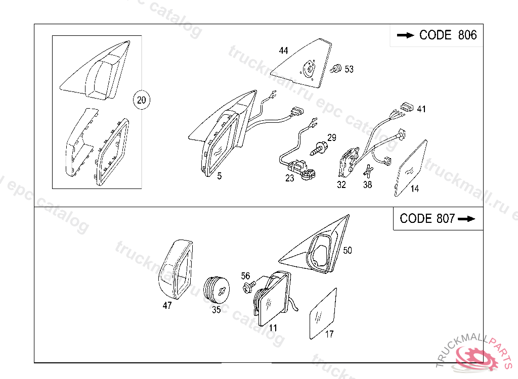 OUTSIDE REARVIEW MIRROR NO CASING,AUTOMATIC DIPPING,RIGHT, A 378020 EXCEPT CODE 807 ALSO INSTALLED IN VEHICLE TO A 378019 WITH CODE 808