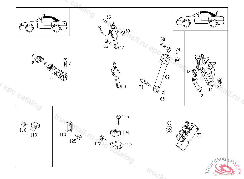 CYLINDER FOLDING TOP CASE COVER CENTER TO REAR SEAT REAR PANEL, Replaced By: A1298002172