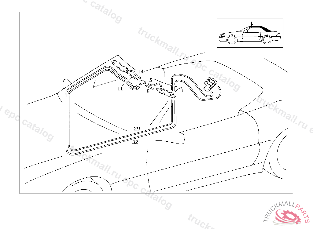 LINE FROM DISTRIBUTOR ON WINDSHIELD FRAME TO RIGHT LOCK NO.44