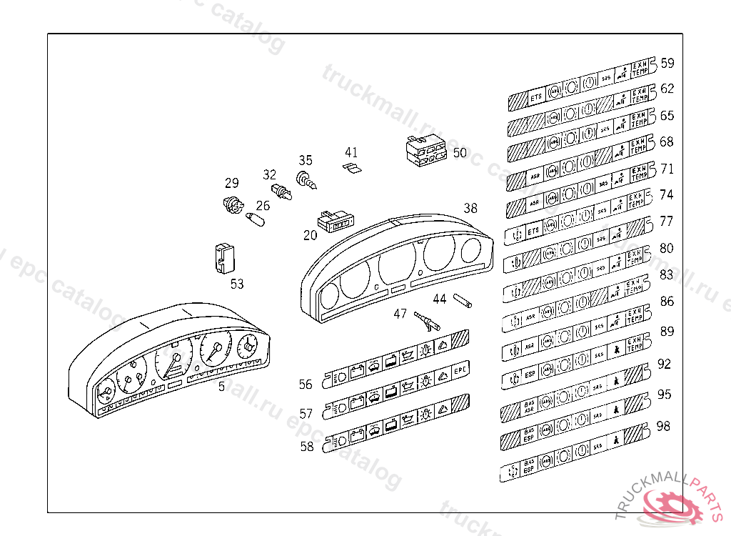 SYMBOL STRIP ONLY USED WITH ESP & ADS, RIGHT, A 290167 EXCEPT CODE 805 ALSO INSTALLED IN VEHICLE TO A 290166 WITH CODE 806 A 358832 EXCEPT FOR A 331465 - A 358832 WITH CODE 057