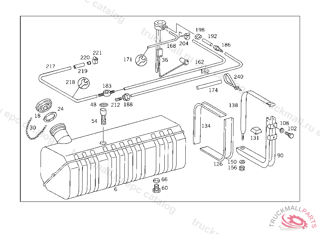 FUEL TANK , FIRST EXHAUST STOCK OF OLD PARTS UP TO IDENT NO. K 169122, Replaced By: A6524700101, +001A0005409917, +001A0115426017