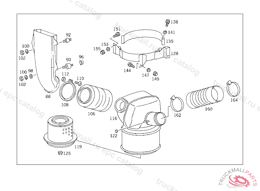 HOSE CLAMP FROM AIR CLEANER TO TRANSVERSE INTAKE PIPE, Replaced By: A0019951910