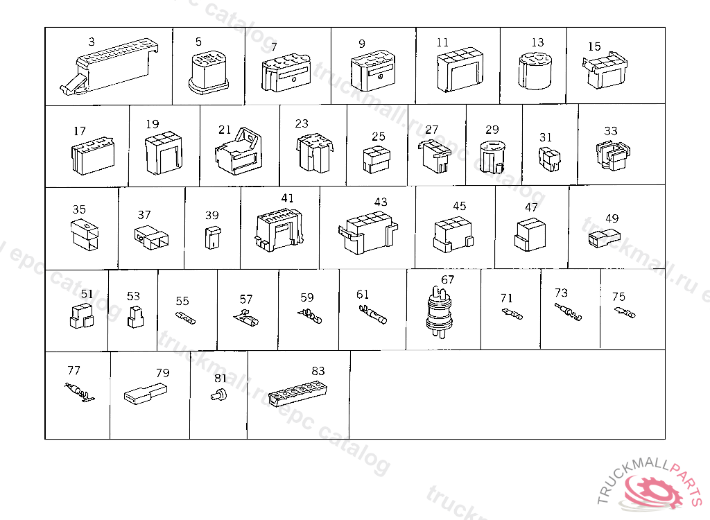 PIN BUSHING HOUSING. PLUG HOUSING FROM CHASSIS/CAB CONNECTION POINT TO TACHOGRAPH
