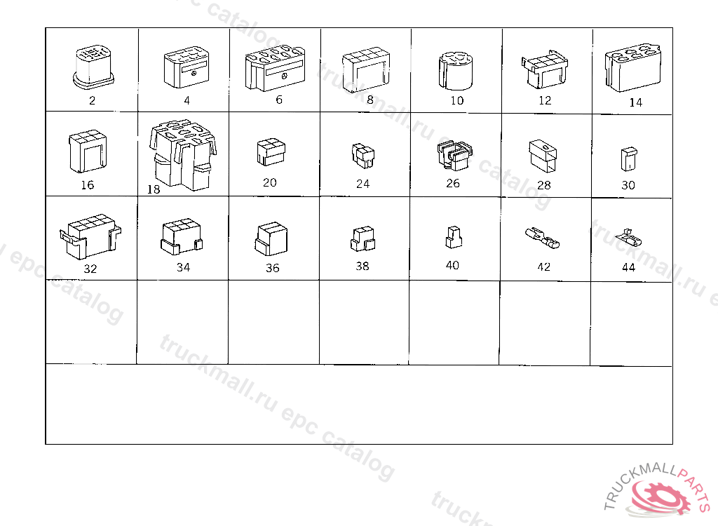 PIN BUSHING HOUSING. PLUG HOUSING FROM CHASSIS/CAB CONNECTION POINT TO TACHOGRAPH
