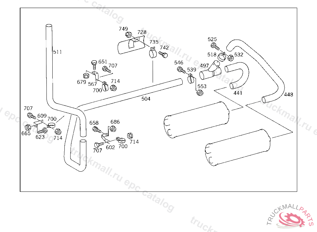 EXHAUST PIPE FROM CONNECTION FITTING TO CAB REAR PANEL