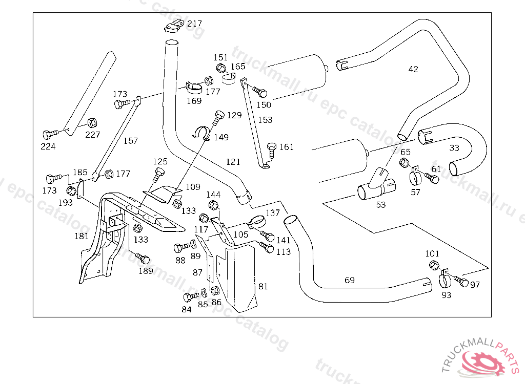 REAR EXHAUST PIPE , WITH PARKING BRAKE VALVE IN INSTRUMENT PANEL