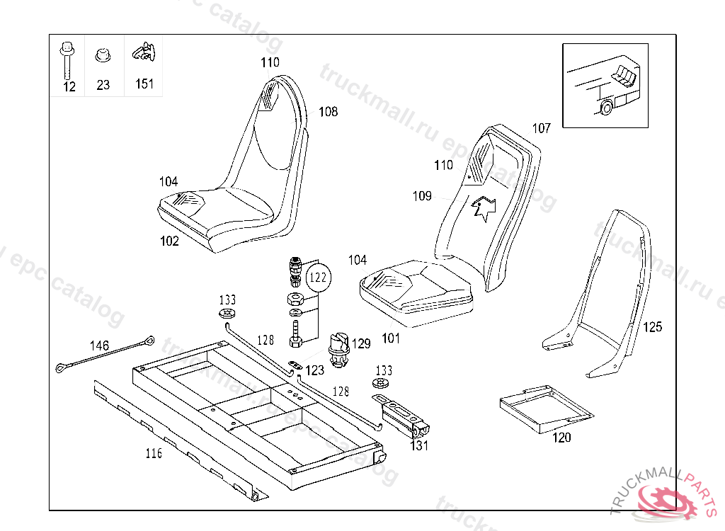 BACKREST PASSENGER SEAT, ONE-AND-A-HALF SEAT, TO BE ORDERED ONLY ON COMMISSION AND INDICATING ALSO ALL THE VEHICLE DATA REQUIRED