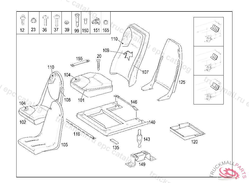 BACKREST PASSENGER SEAT, ONE-AND-A-HALF SEAT, TO BE ORDERED ONLY ON COMMISSION AND INDICATING ALSO ALL THE VEHICLE DATA REQUIRED